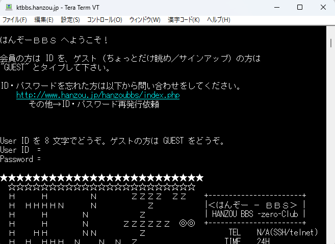 はんぞーBBS初めての方はユーザ名:「GUEST」、パスフレーズ「未入力」でログインしてユーザIDを発行してください。